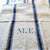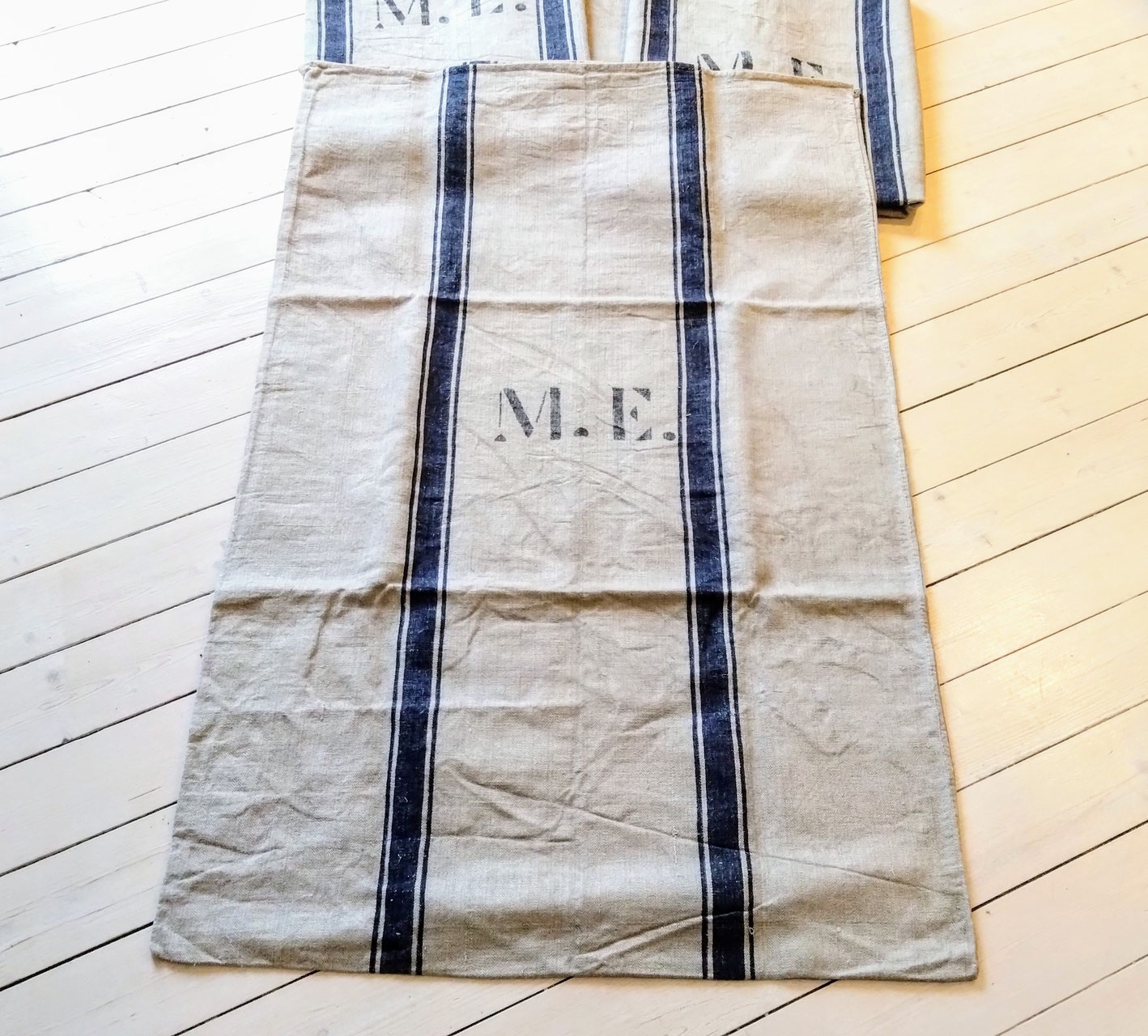 Alter Leinensack mit Streifen und Monogram. Perfekter Zustand. Gereinigt ohne Löcher. Stückpreis!