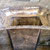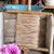 Alte Schütten mit Aufschrift. Insgesamt 5 Stück. Mit altersbedingten kleinen Ecken und Kanten.