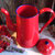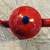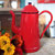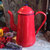Rote Emaille Kanne in einem sehr guten Zustand. Dunkelblauer Rand. H23,5 x B22 x D12,5