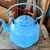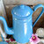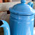 Große blaue Emaille Kanne aus Dänemark. Altersbedingte Gebrauchsspuren.
