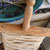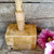 Alter Fleischklopfer aus Holz, mit altersbedingten Gebrauchsspuren.