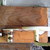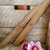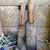 Dieses Set aus Spatel und Messer hat schöne Holzgriffe und alte Patina. Spatel L28 x B6, Messer L26 x B3 cm