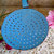 Alte, schwedische Büchse mit toller Patina, blau mit Motiv. D22 x H8 cm