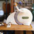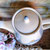 Diese alte, original schwedische Kaffeemühle ist aus cremefarbenen Porzellan mit Metalldecke, außerdem mit grünem Schriftzug, Glasgefäß und Holzkurbel. H32 x T(mit Kurbel)16 x B11,5cm.