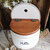 Altes Porzellangefäß Mjöl aus Schweden, mit Holzdeckel. Auch für die Wand geeignet. H21,5 xB16,5 x T13 cm.